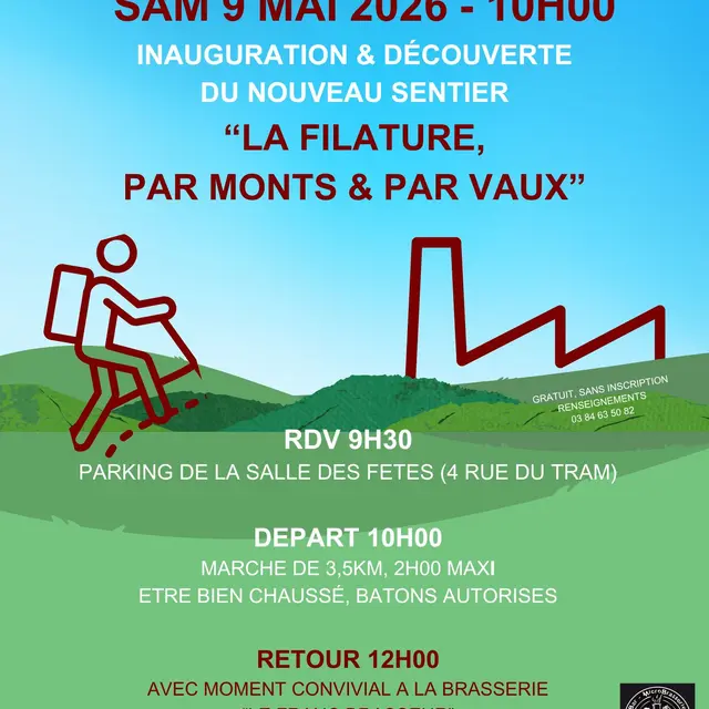 Inauguration d'un nouveau sentier à Ronchamp. Départ samedi 9 mai à 10h depuis la salle des fêtes pour découvrir cette randonnée de 4 km qui offre de beaux points de vue !