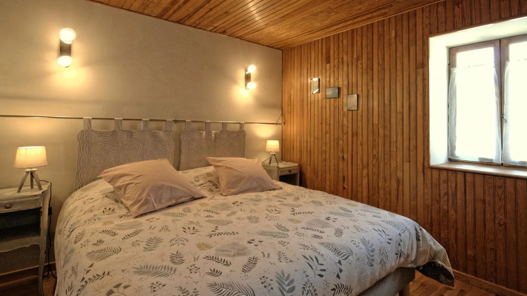 À l’étage, un vaste palier accueille un canapé convertible deux places, un bureau, une bibliothèque et des jeux. Il dessert deux chambres, l’une avec un lit de 140 x 200 cm et un lit de 90 x 190 cm, l’autre avec deux lits de 90 x 200 cm jumelables. Un lit parapluie est également à disposition. Les draps sont fournis et le chauffage bois et fioul est inclus.